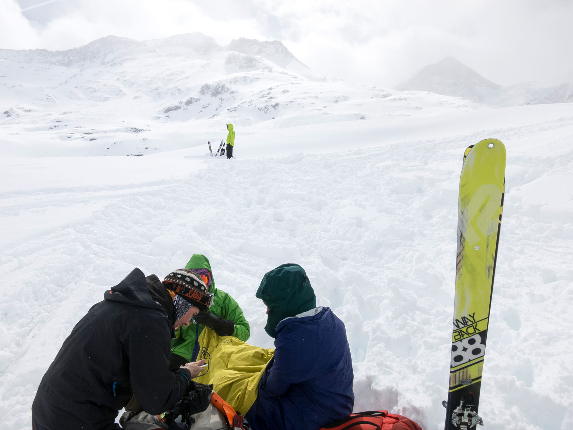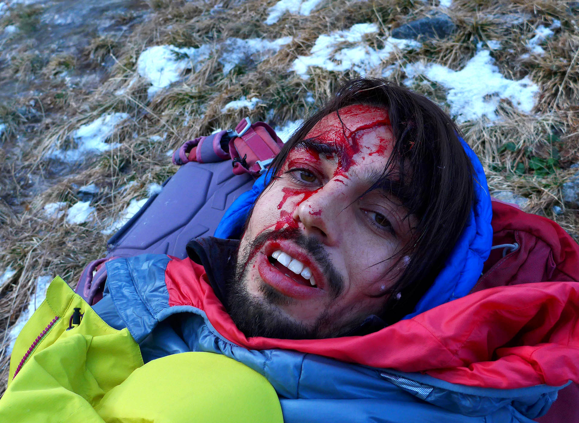 Bilder zu zeigen, wo eine Skitour auch mal im Krankenhaus und nicht zwangsweise bei einem Weißbier auf der Sonnenterrasse enden darf, die Abfahrt auch mal 1300 Hm Bruchharschgewürge bedeuten kann, wo definitiv gar nichts staubt außer die Wundkompressen, die man sich abends auf das verrenkte Knie wickelt, mag zwar nicht Publikumswirksam sein aber es beruhigt mein Gewissen. Meinem Wunsch auch mal ein Lächeln zu zeigen, wo ein Zahn fehlt und ein eingetrockneter Bluttropfen noch an der Nase klebt möchte ich hiermit ebenfalls nachkommen.