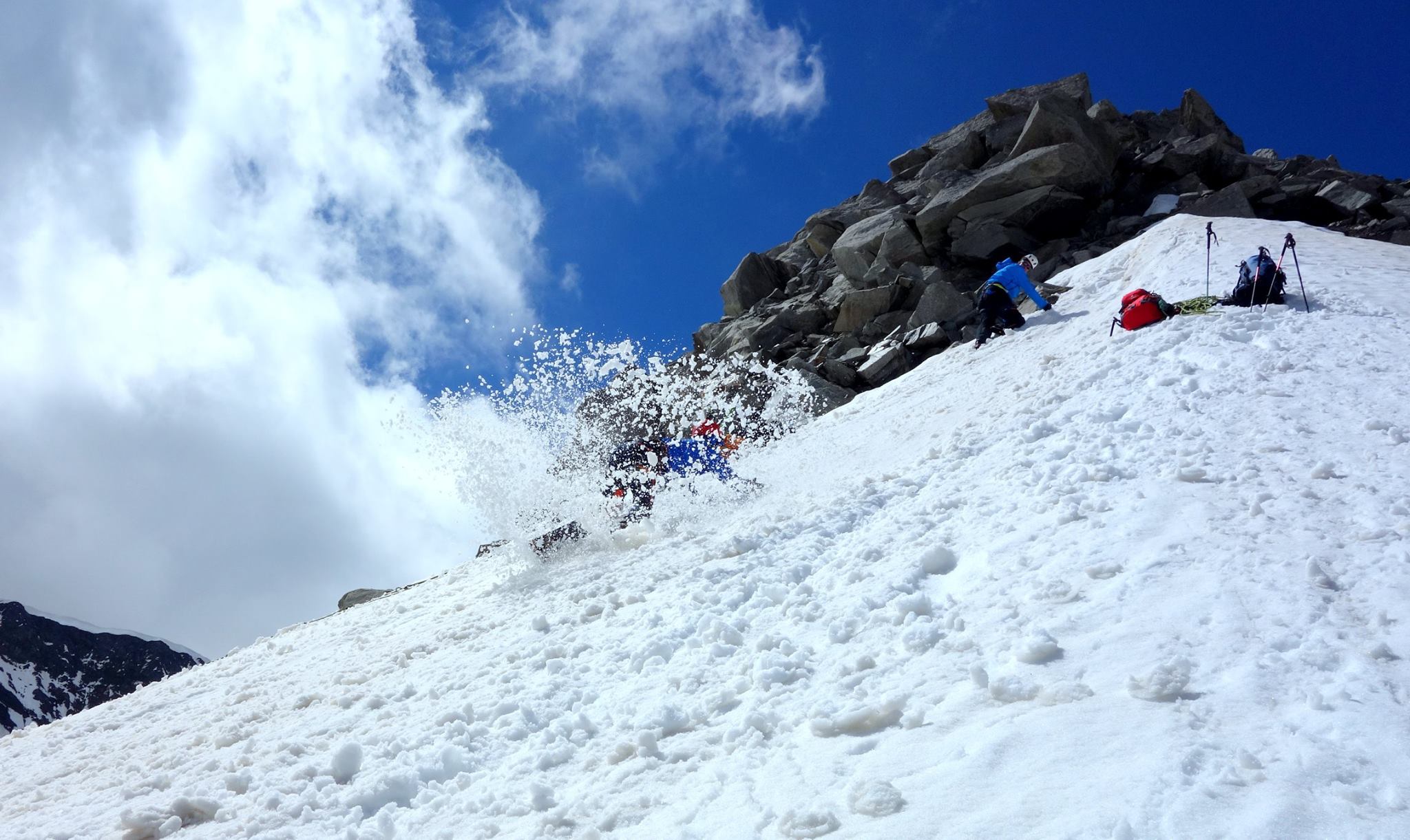 Auch das Sichern und Gehen im Firn (harten Schnee) wurde ausführlich besprochen und angewendet. Das Bremsen im Firn wurde genauso geübt wie das Sichern mit Pickel mittels T-Anker. Somit wurden die Teilnehmer*innen auf Geländeformen von Fels, Eis und Schnee perfekt vorbereitet und eingeschult, um sicher in diesem Gelände unterwegs zu sein.