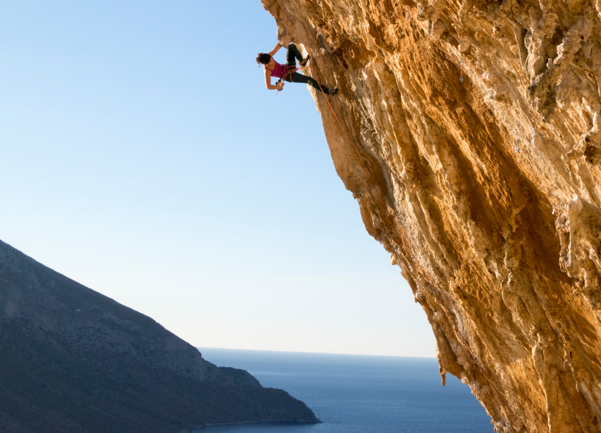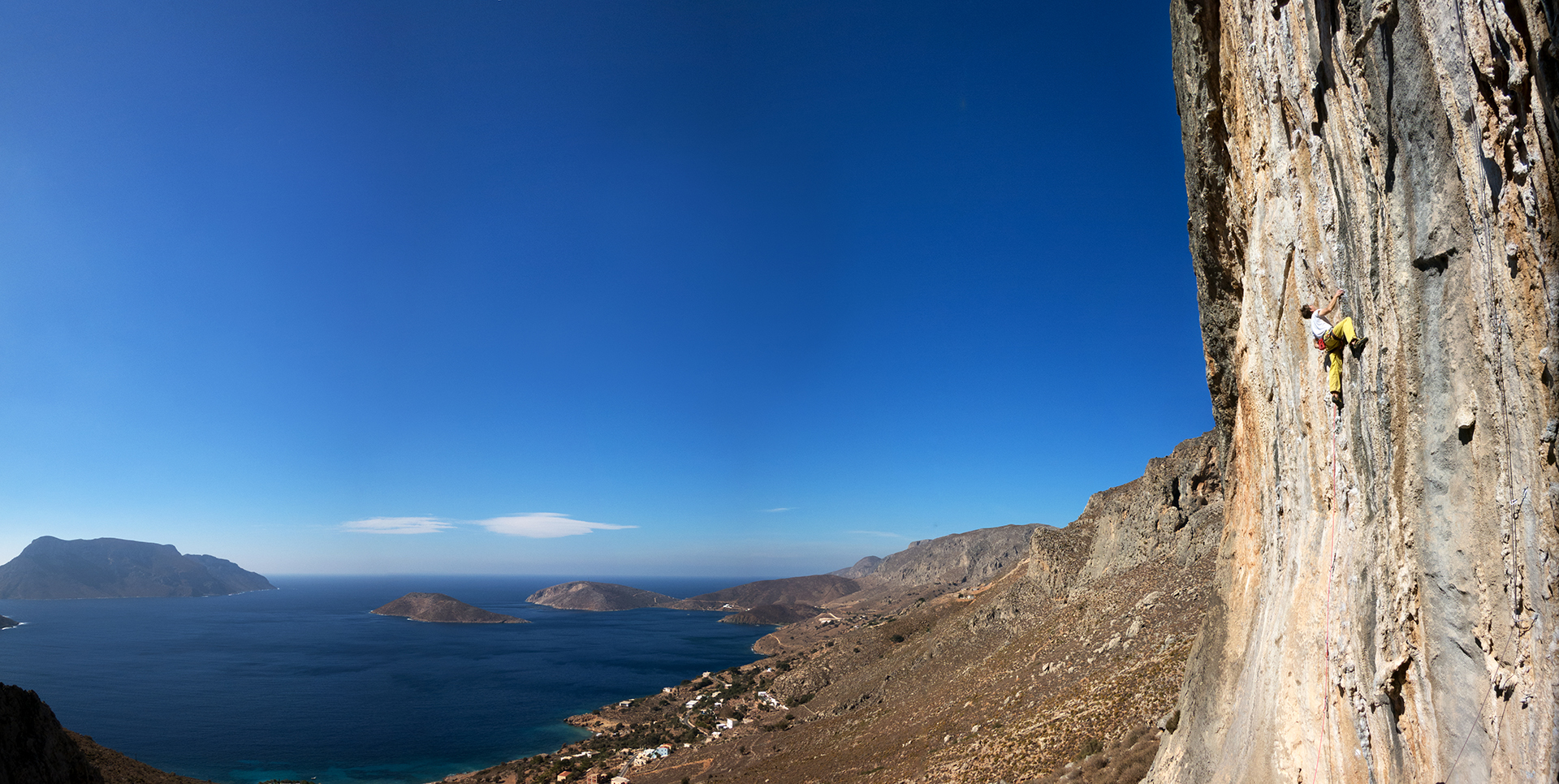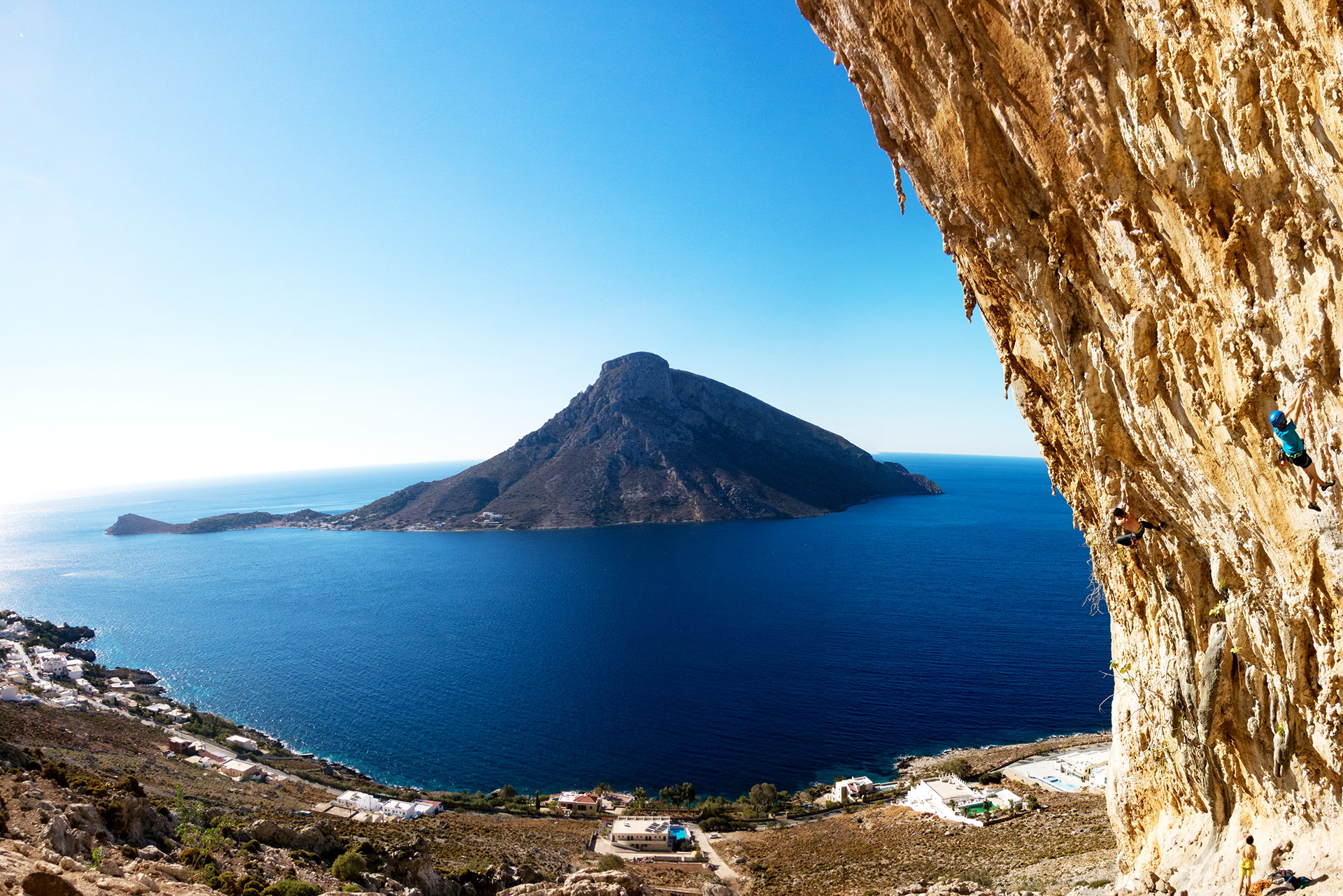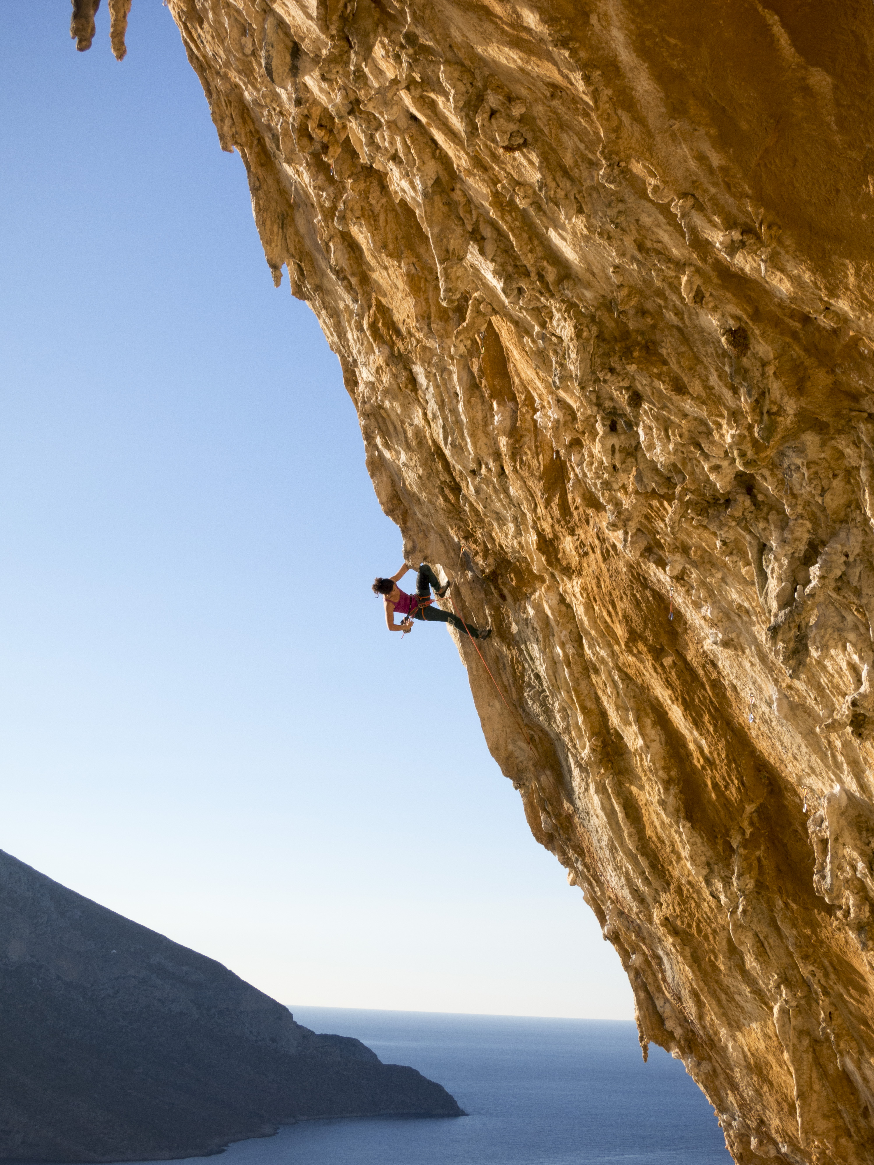Es gibt auch ein paar Mehrseillängentour z.B. auf Telendos. Die meisten Touren auf Kalymnos, und weshalb ja fast alle Leute auch hierher kommen, sind jedoch gut abgesicherte Einseillängen-Sportkletterrouten.