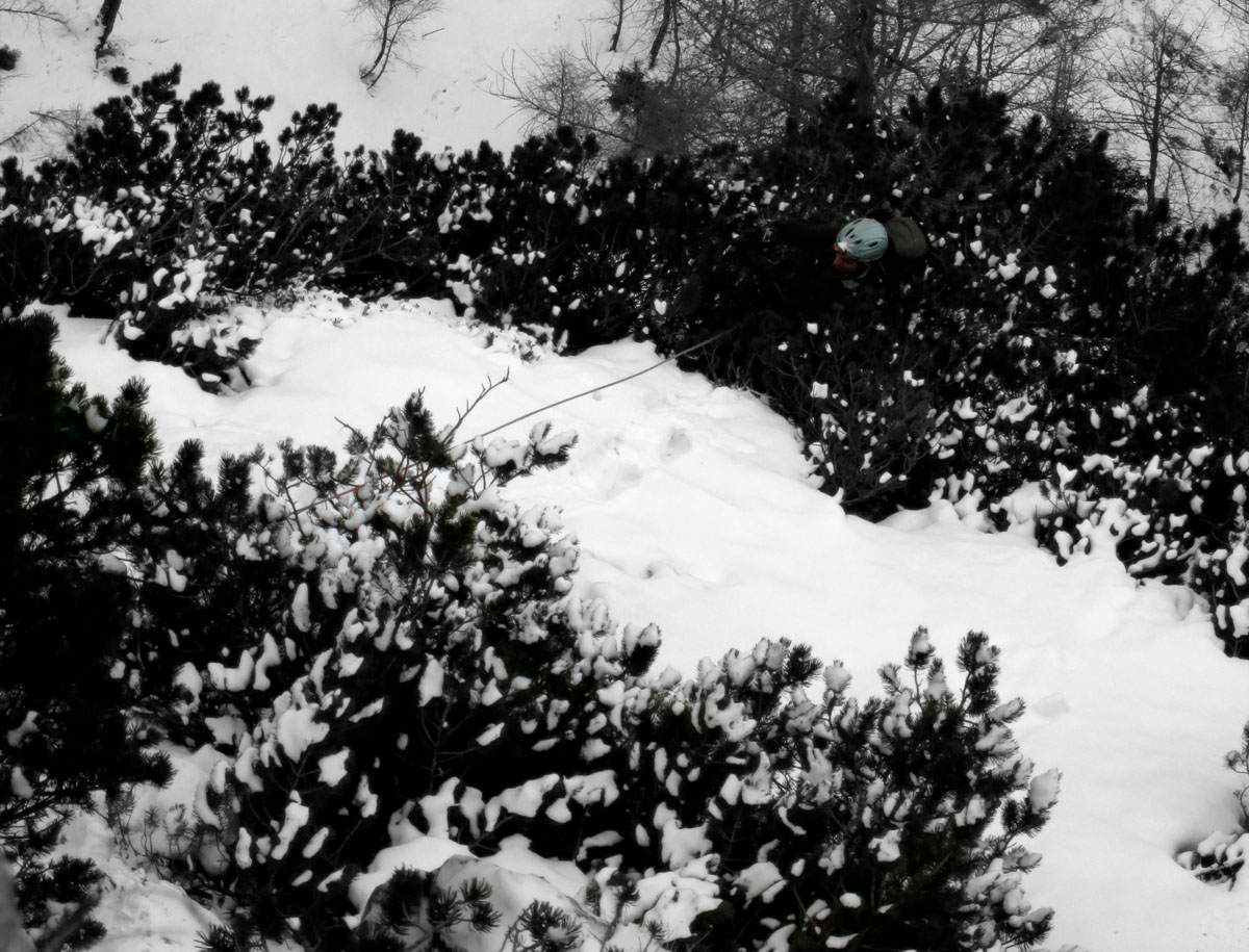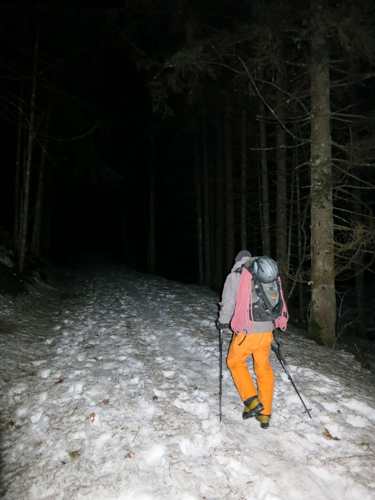 Schon der Aufschwung ins Pflugtal erwies sich im dunklen und ohne Vorerfahrung als orientierungstechnisch nicht ganz einfach, wodurch wir gleichmal Individualität zeigten. Am Einstieg angekommen, ging es erstmals über unzählige Latschen drübernudelnd dem Pflughörndl entgegen.