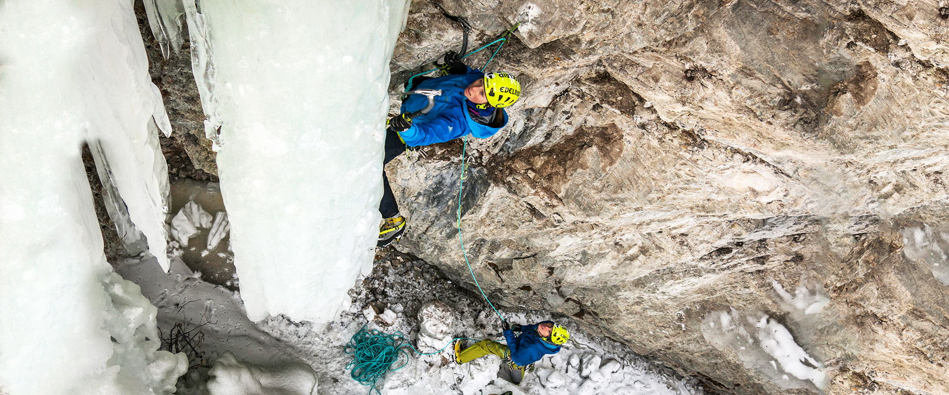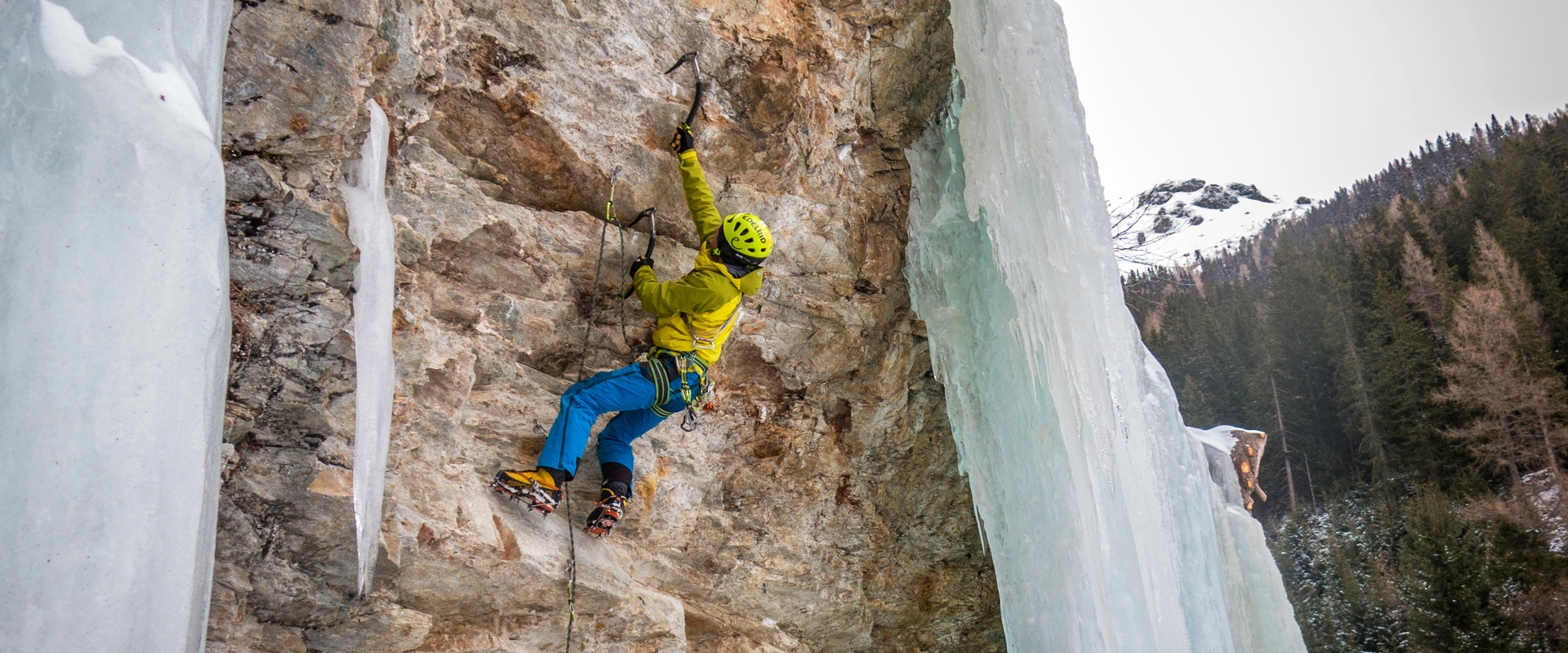 • Sicherungs- und Eisklettervorerfahrung (Vorstiegsklettern im Eis, geübtes Vorstiegssichern, den Achterknoten und den Partnercheck solltest du können)