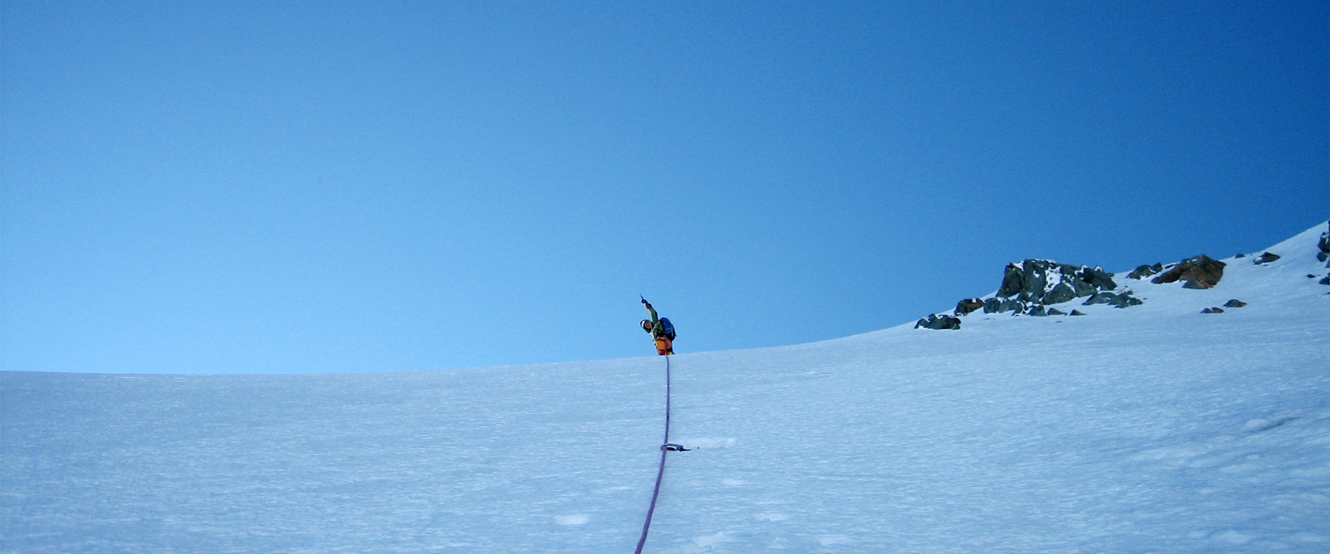 - Geübter Umgang mit Steigeisen, Pickel, Gurt und Seil