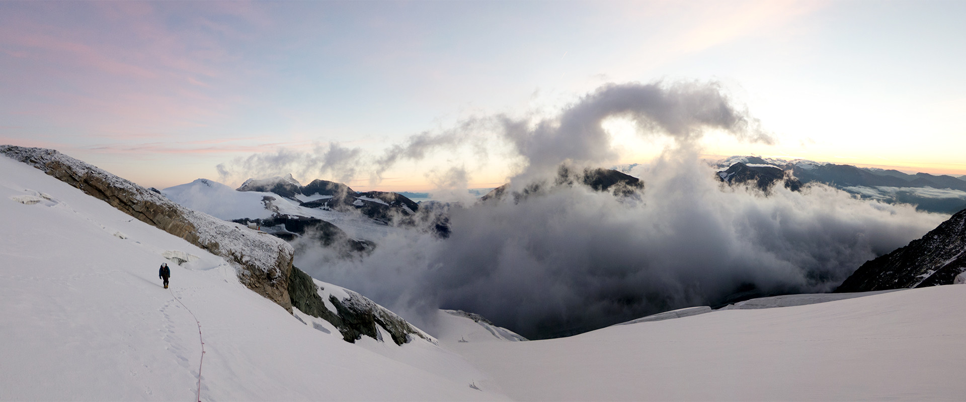An diesem Tag geht es in aller Früh Richtung Einstieg unserer Tour. Nach einem kurzen flachen Stück zu Beginn, klettern wir nun gesichert, mit Steigeisen an den Füßen und Pickel in den Händen, in die Flanken unserer jeweiligen Route hinauf. Bei den Routen Aschenbrenner und Pallacivinirinne steigen wir fast direkt am Gipfel aus. Bei den Routen Mayerlrampe und Berglerrinne führt uns der wunderschöne und toll zu kletternde Nordwestgrat hinauf zum Gipfel. Durch die „herausragende“ Position des Großglockners bietet sich dir vom Gipfel ein wunderschönes Panorama über die umliegenden Gebirgsketten. Über den Normalweg und weiters über das Hofmannskees oder über den Glocknerkamp (Meletzkigrat) geht es zurück zur Franz-Josefs-Höhe.