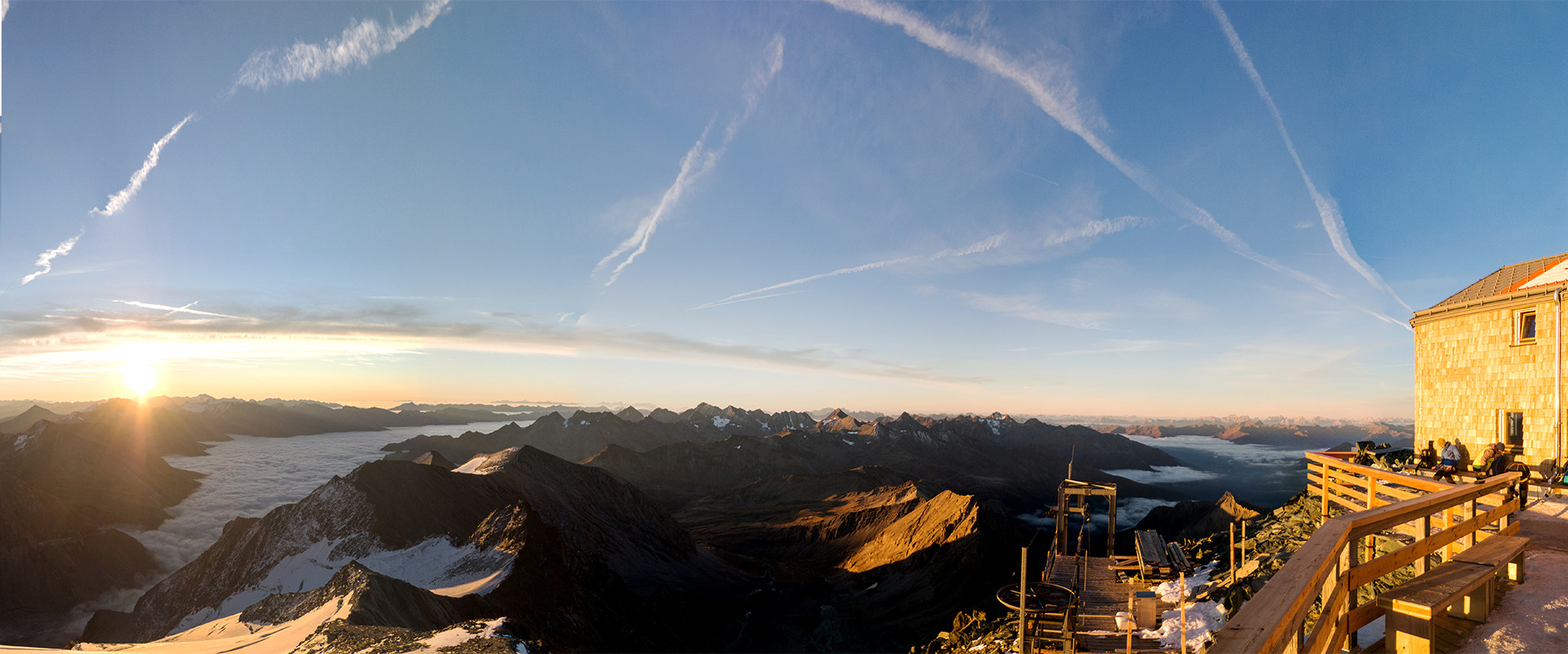 Treffpunkt ist am Mittag der Parkplatz beim Lucknerhaus (1920 m) bzw. an der Stüdlhütte (2802 m), welche auf gut markiertem Steig erreichbar ist. Gemeinsamer Hüttenzustieg und Materialcheck. In imposanter Szenerie nähern wir uns dem Ködnitzkees. Mit Steigeisen und Seil gesichert geht’s über den Gletscher und einen kurzen Gratabschnitt zur Erzherzog-Johann-Hütte. Je nach Befinden der Gruppe gehen wir heute entweder gleich noch auf den Gipfel und genießen den Großglockner von seiner ruhigeren Seite oder lassen den Tag gemütlich an dieser exponierten und wunderschön gelegenen Hütte ausklingen.