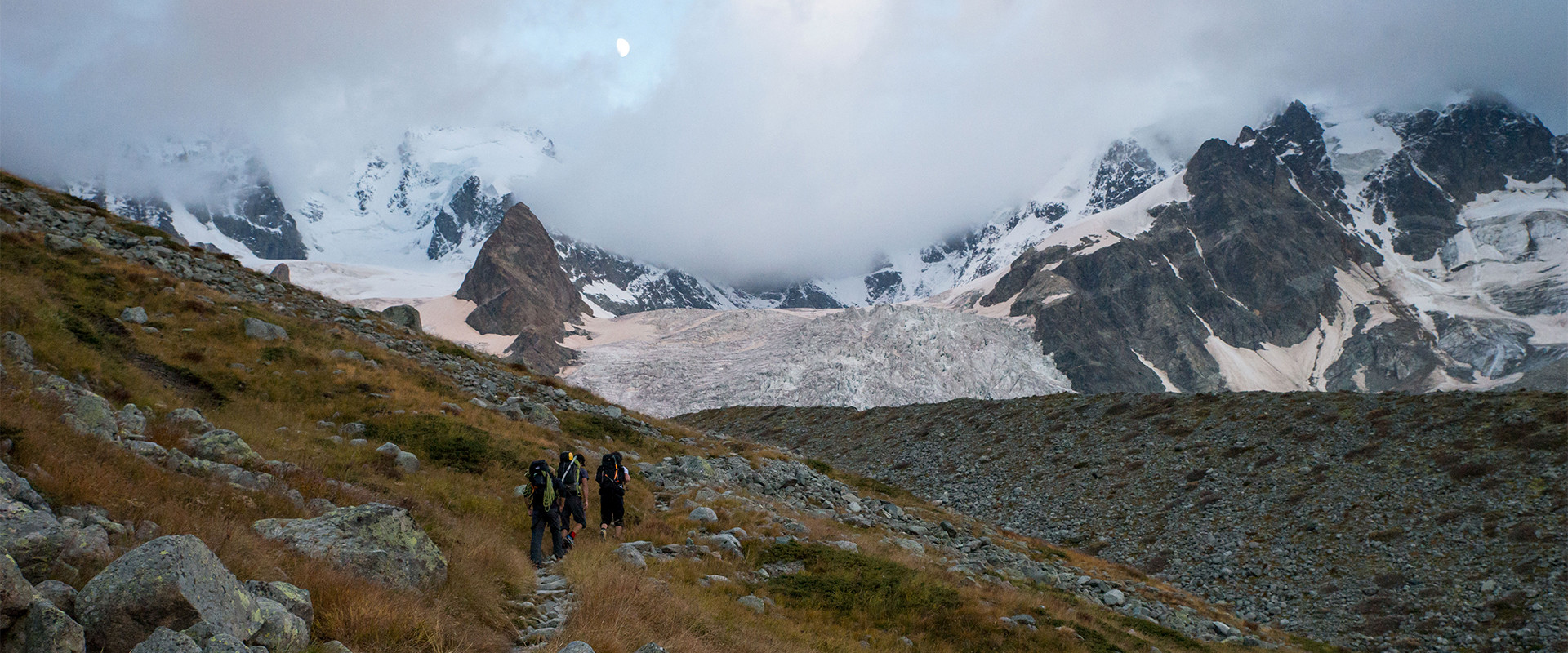 Der Biancograt fordert eine gute Kondition für 1400 hm in unwegsamen Gelände. Die Überwindung vieler Abschnitte dieser Tour benötigt im Auf- sowie im Abstieg große Aufmerksamkeit von dir. Am Biancograt selbst musst du gesichert kurze Passagen im 2-3 Schwierigkeitsgrad klettern und in ca. 45° steilem Firn stapfen.