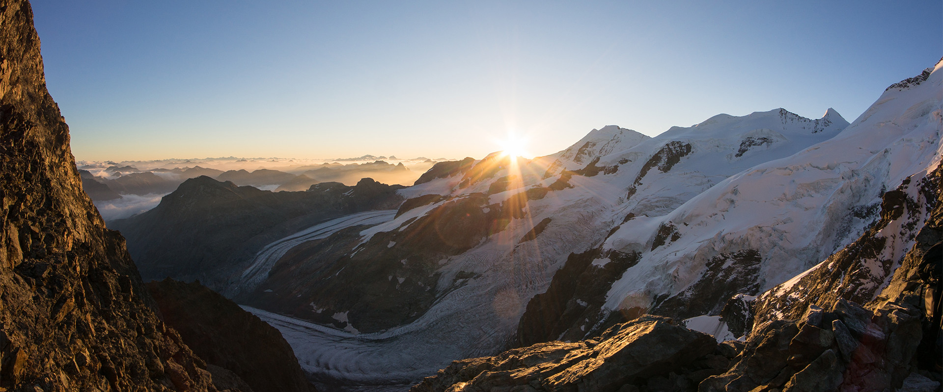 Frühmorgens starten wir im Schein der Stirnlampe und gehen am Moränenhang des Vadret da Tschierva aufwärts. Am Rand des Gletschers suchen wir uns einen Weg zu Fuorcla Prievlusa (3430 m), wo uns die Sonne und der Piz Palü mit Ostpfeiler und Bumillerpfeiler erstmals ins Gesicht scheinen werden. Von hier geht’s um einen Felszacken herum, hinein in „die Firnschneid“ aller Firnschneiden dem Biancograt. Nach einer kurzen Felseinlage stehen wir am Piz Bernina (4049 m), dem höchsten Punkt dieser drei Tage. Der Abstieg verlangt noch Aufmerksamkeit und führt uns vorbei am La Spedla zum Rifugio Marco e Rosa (3597 m). Die Hütte wirkt, als wäre sie in den Wogen eines zu Eis erstarrten Meeres umgeben. Rings um die Hütte hängen die Gletscher spektakulär an den Felsflanken und betten das Rifugio in eine spektakuläre Gletscherszenerie.
