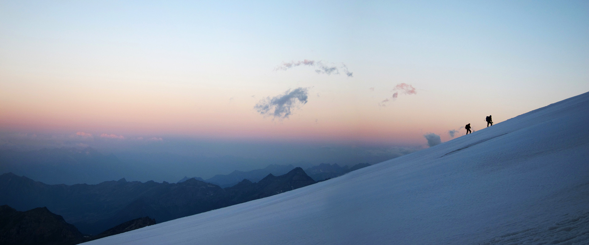 Die Walliser Gipfelparade fordert eine gute Kondition für 1200 Hm in unwegsamen Gelände. Du musst lange Passagen mit Steigeisen gehen und kurze Gratpassagen im 1. Schwierigkeitsgrat bewältigen. Die Tour fordert besonders deine Kondition bzw. Höhenverträglichkeit da wir uns lange Zeit über 4000 m befinden werden.