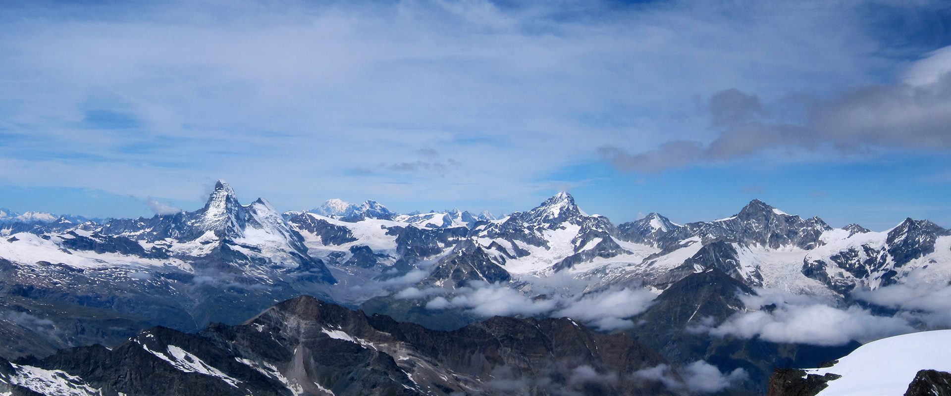Die Walliser Alpen gehören zu den Westalpen und befinden sich zu einem Teil im Schweizer Kanton Wallis sowie in den Regionen Piemont und Aostatal in Italien. Unzählige Viertausender liegen in dieser Gebirgsgruppe. Matterhorn (4478 m), Breithorn (4159 m), Liskamm (4527 m), Dufourspitze (4634 m), Weissmies (4023 m), Weisshorn (4505 m), Zinalrothorn (4221 m), Ober Gabelhorn (4063 m), Allalinhorn (4027), Grand Combin (4314 m) oder Dom (4545 m) sind nur ein Auszug der bekanntesten Gipfel dieser Region. Die Dufourspitze ist mit 4634 m die höchste Erhebung und die auf der Signalkuppe gelegene Capanna Regina Margherita ist mit 4554 Meter über dem Meeresspiegel die höchstgelegene Hütte bzw. das höchstgelegene Gebäude Europas. Unterhalb dieser eindrucksvollen Gipfel- und Gletscherlandschaft befindet sich eine üppige und grüne Almlandschaft. In den Tälern dieser Region hat sich in vielen Dörfern noch ein recht ursprüngliches Ortsbild erhalten. Die Häuser besitzen meist noch Dächer aus Stein und am Straßen- bzw. Wegrand plätschert aus unzähligen Granitstein-Brunnen frisches Bergwasser. Typisch für diese Region sind auch die sehr originell gebauten Hütten zur Essensspeicherung, welche zum besseren Schutz vor Schädlingen auf flachen Steintafeln gesetzt wurden.