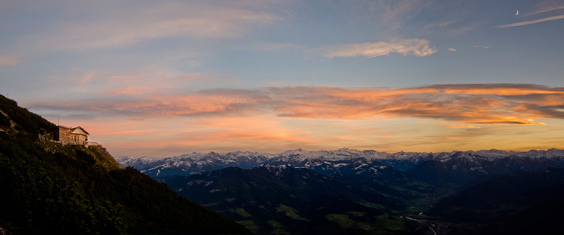 Treffpunkt ist am Morgen der Parkplatz Wengerau (961 m). Gemeinsamer Hüttenzustieg (2 h 30 min oder mit Hüttentaxi verkürzt 45 min) von hier aus. Der Materialtransport erfolgt bis ca. 30 Gehminuten von der Hütte entfernt. Du musst dein Gepäckstück von hier selber oder mit Hilfe von Lamas zur Hütte tragen (Wichtig: Gepäck für dich tragbar einpacken). Nach einer kurzen Pause üben und frischen wir die Basisinhalte (Gehen und Bewegen im Gelände, Standplatzbau, Sicherungstechnik, Abseilen, Seilschaftsablauf sowie Bergrettungsgrundlagen) im nahegelegenen Klettergarten auf. Bei hoffentlich romantisch-untergehender Sonne gönnen wir uns das Essen und Trinken auf der südseitig ausgerichteten Panorama-Terrasse der Werfener Hütte. Nach der Stärkung für Leib und Seele werden wir die Tour für den nächsten Tag planen sowie etwas Theorie durchnehmen.