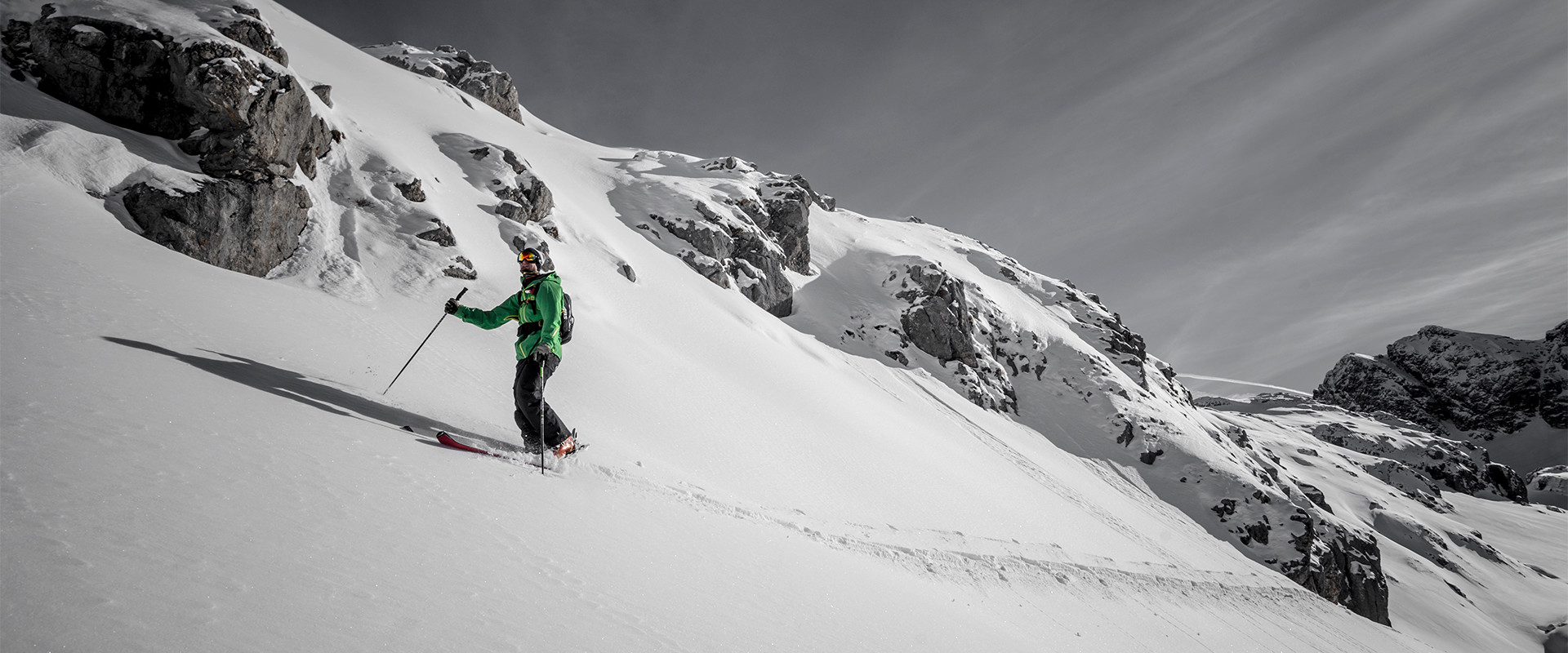 Angepasst an die aktuell vorherrschenden Wetter- und Schneeverhältnisse wird ein entsprechendes Tagesprogramm zusammengestellt und durchgeführt. Dabei sollen die im Moment vorherrschenden Gegebenheiten bestmöglich zum Freeriden genützt werden, wobei der Fokus grundsätzlich auf die Qualität der Abfahrt gelegt wird. Auswahlmöglichkeit für Gelände-Anfänger / Genießer oder fortgeschrittene Skifahrer.