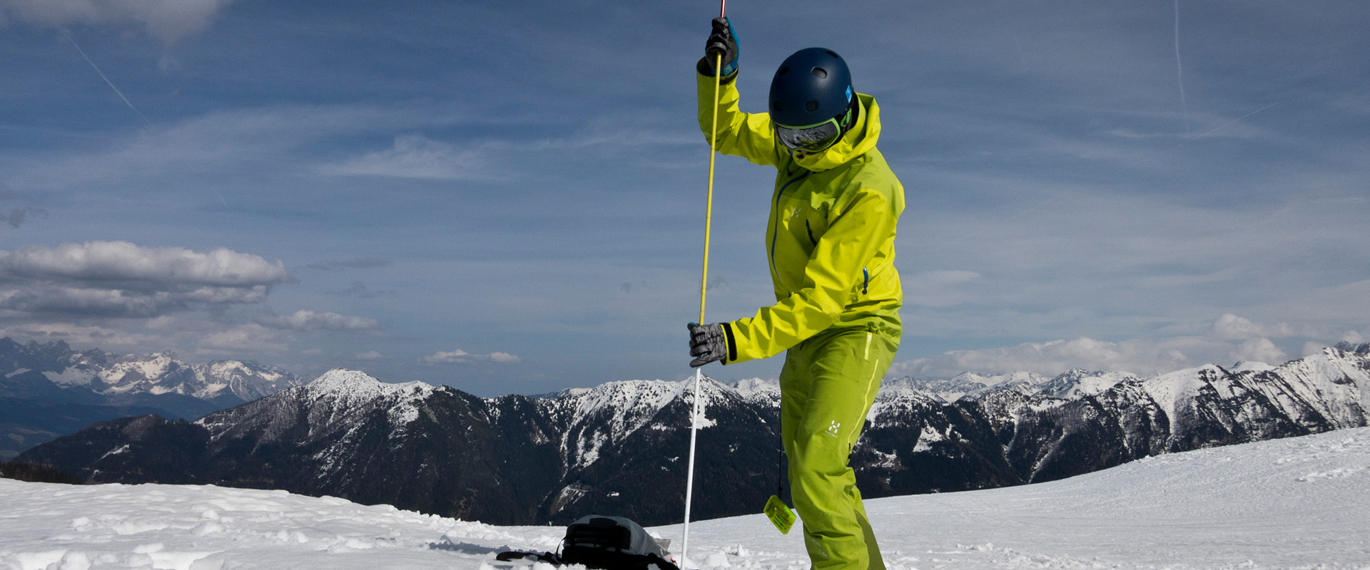 Jede Lawine / jede Verschüttung ist ein lebensbedrohliches Ereignis, dessen positiver Ausgang immer von einer großen Portion Glück abhängt. Am ersten Tag wird die Lawinenverschüttetensuche bzw. ein Lawinenunfallszenario intensiv geübt, damit du im Falle des Unfalles nicht ausschließlich von der Portion Glück abhängig bist. Du wirst in diesem Lawinenlehrgang die Einfachverschüttung als auch die kompliziertere Mehrfachverschüttung ausführlich trainieren und üben. Dieser Tag steht unter dem Zeichen der Unfallintervention. Also die richtigen Maßnahmen zu kennen, die bei einem Lawinenabgang von dir abverlangt werden.